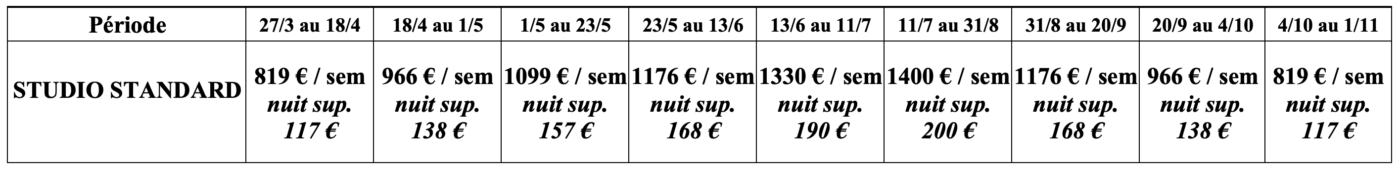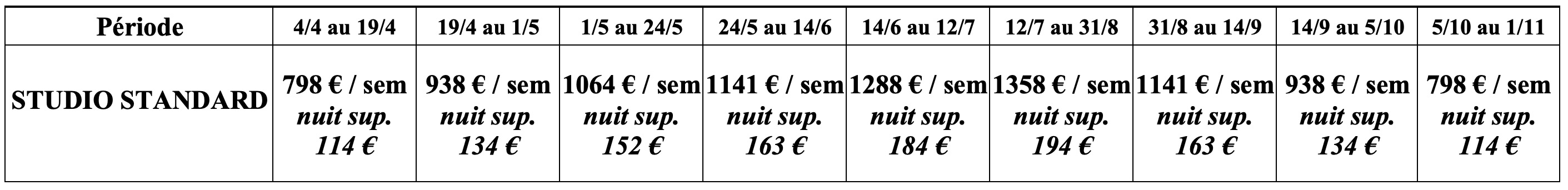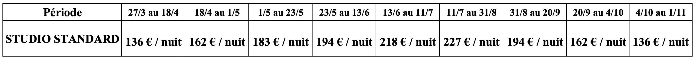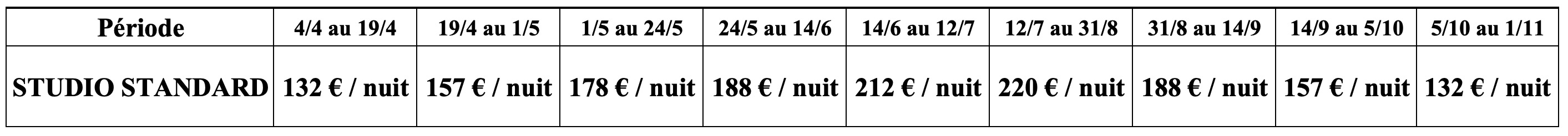 - Taxe de séjour : 1,15 € par nuit et par personne.